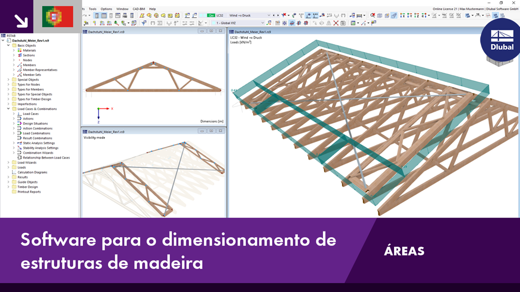 Trabalha com madeira? Simplifique o seu trabalho diário! Com os programas de cálculo estrutural RFEM 6 e RSTAB 9, o cálculo de estruturas de madeira é uma brincadeira de crianças. Experimente – vai ficar surpreendido!