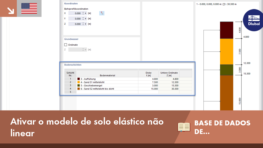 Veja este pequeno vídeo para ver como pode definir o modelo de material de solo não linear elástico e definir os parâmetros específicos.