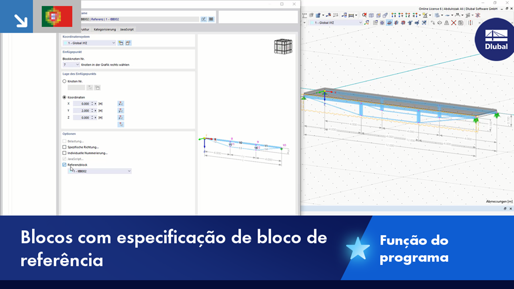 Se alterar posteriormente parâmetros do bloco de referência, tais como a geometria, o material e a secção, estes serão adotados automaticamente pelos "blocos secundários".