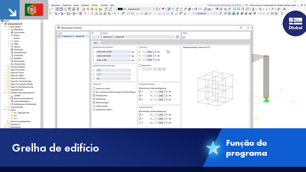 O objeto auxiliar "Grelha de edifício" ajuda-o a planear a sua estrutura. Permite a entrada intuitiva de coordenadas de grelha e a etiquetagem de linhas de grelha.
