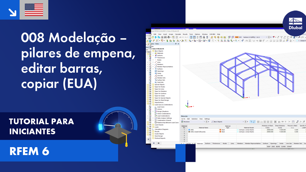 Neste vídeo, iremos concluir a modelação do pórtico de empena, criar contraventamentos de reforço e aprender novos truques no RFEM.
