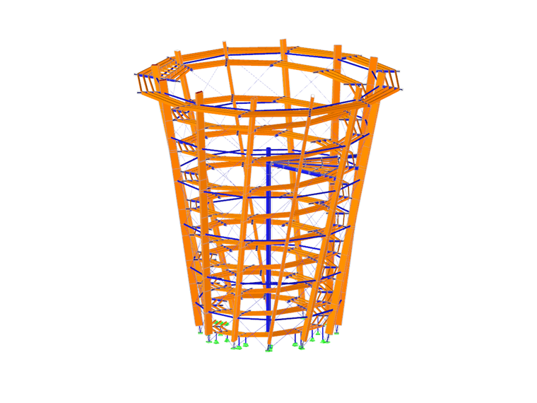 O reforço da torre de observação é garantido por uma malha de diagonais de aço e construções de anéis colocadas à volta de toda a estrutura.