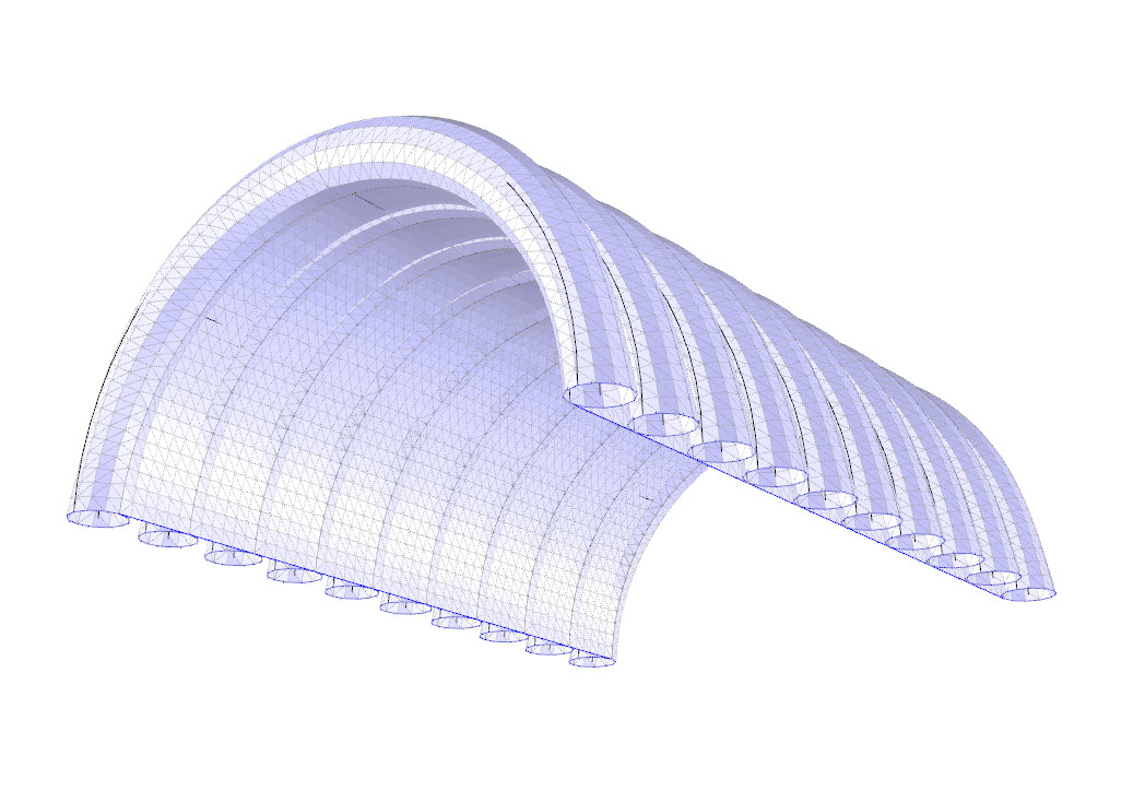 O modelo mostra como modelar estruturas insufláveis para cobrir grandes aberturas.