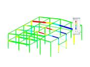 Modelo em 3D do RFEM de um pavilhão com secções de aço formadas a frio.