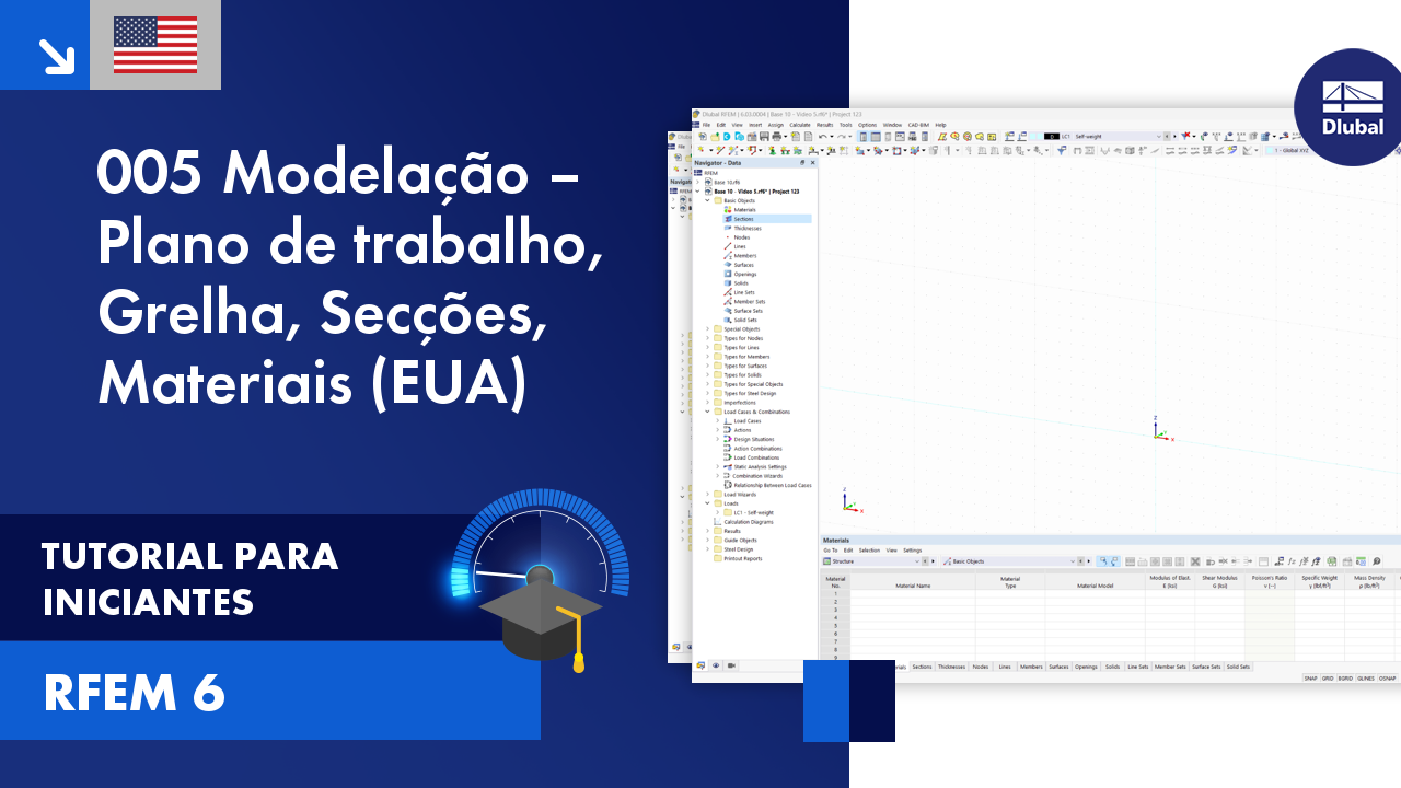 TUTORIAL PARA INICIANTES | Tutorial sobre o RFEM 6 para iniciantes | 005 Modelação | Plano de trabalho | Grelha | Excerto | Materiais (EUA)