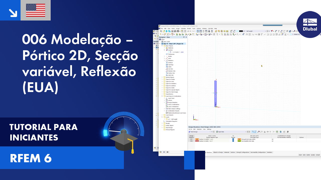 TUTORIAL PARA INICIANTES | Tutorial sobre o RFEM 6 para iniciantes | 006 Modelação – Pórtico 2D, Secção variável, Reflexão (EUA)