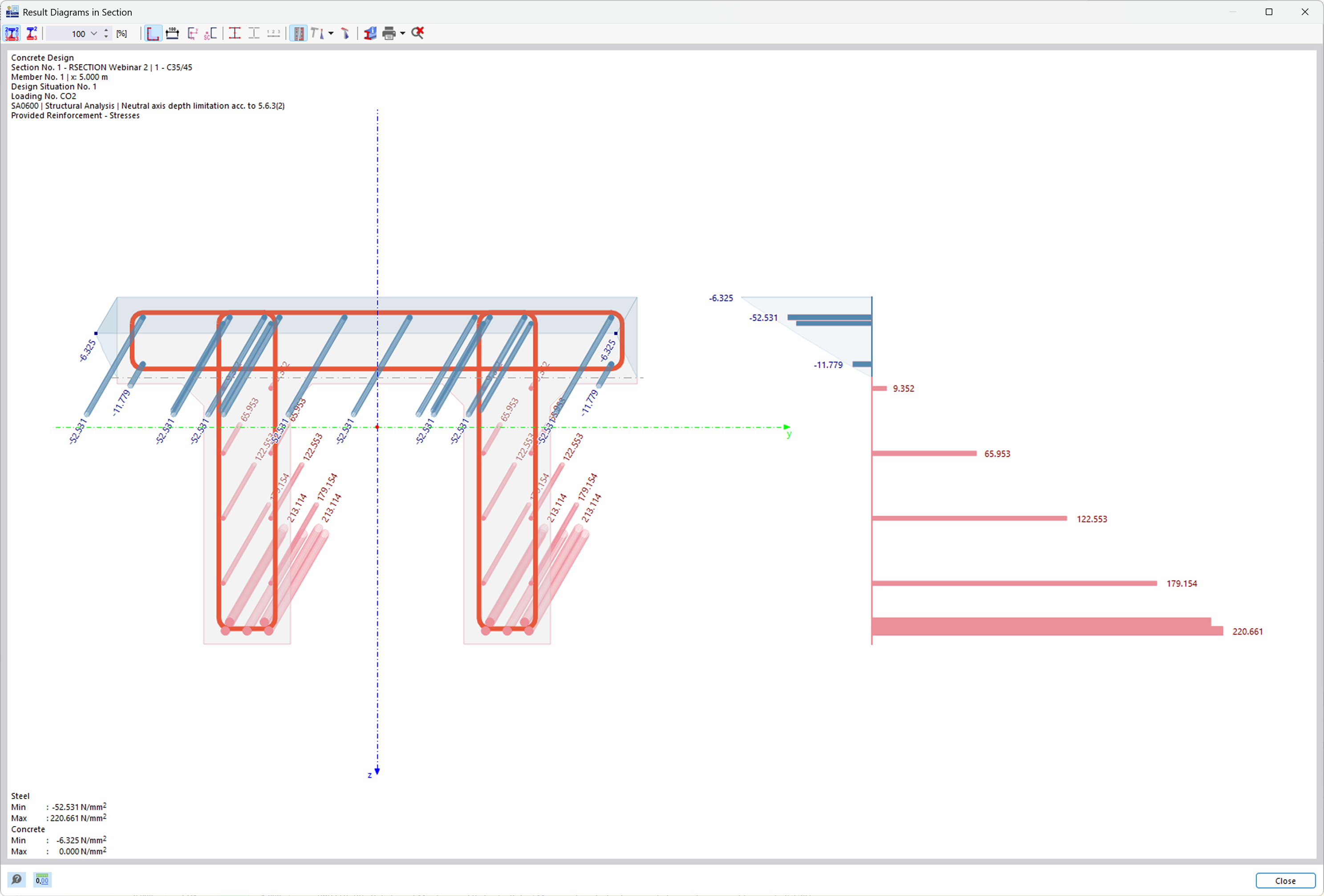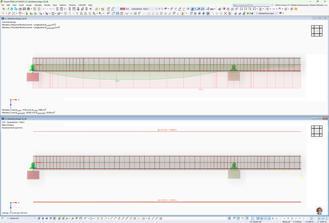 Projeto realizado com o módulo Dimensionamento de betão no RFEM 5