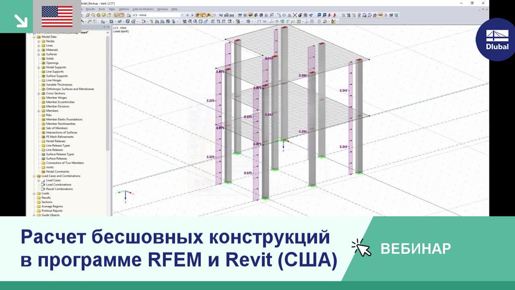 - Расчет по МКЭ и расчет стальной и железобетонной конструкции в программе RFEM согласно американским нормам