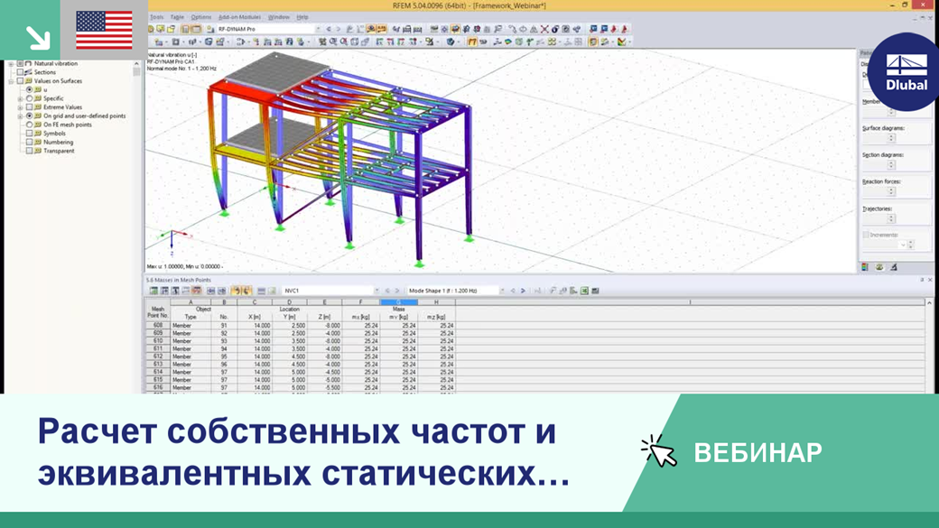 - Создание эквивалентных статических сил в дополнительном модуле RF-DYNAM Pro - Equivalent Loads