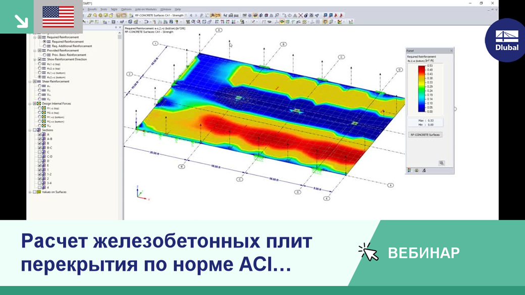 Расчет железобетонных плит перекрытия по норме ACI 318-14 в программе RFEM