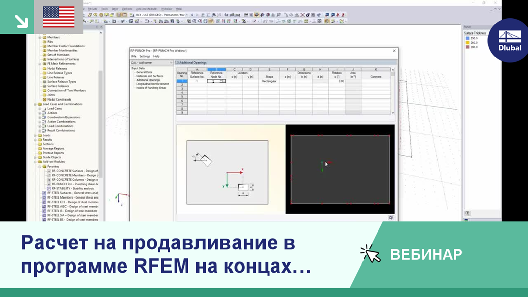 Расчет на продавливание в программе RFEM на концах стен, в колоннах и в углах