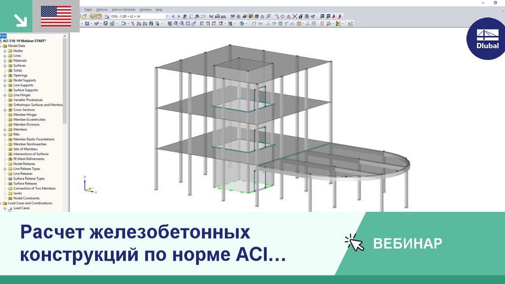 В данном вебинаре будет показан общий процесс расчета железобетонных конструкций по норме ACI 318-19 в программе RFEM и ее дополнительных модулях RF-CONCRETE.