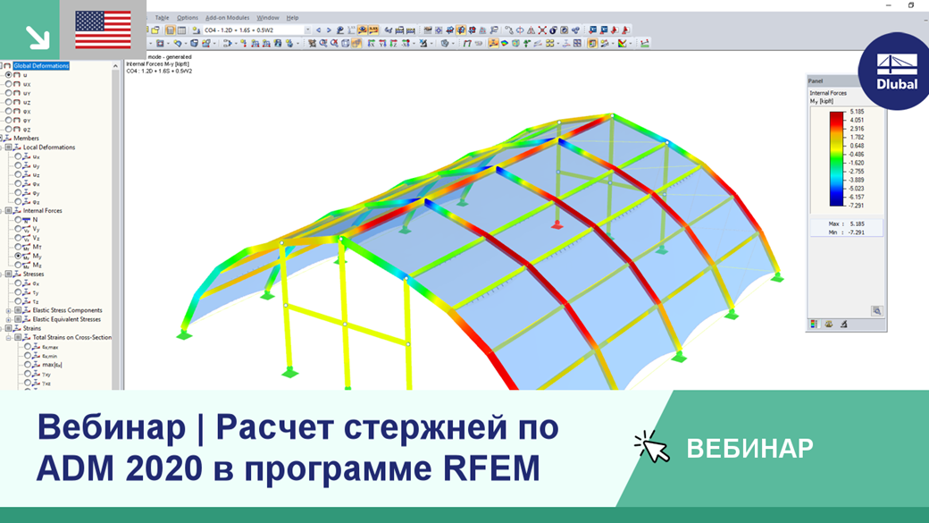 В данном вебинаре будет продемонстрирован процесс расчета алюминиевых стержней в программе RFEM в соответствии с Руководством по расчету алюминиевых элементов (ADM) 2020.