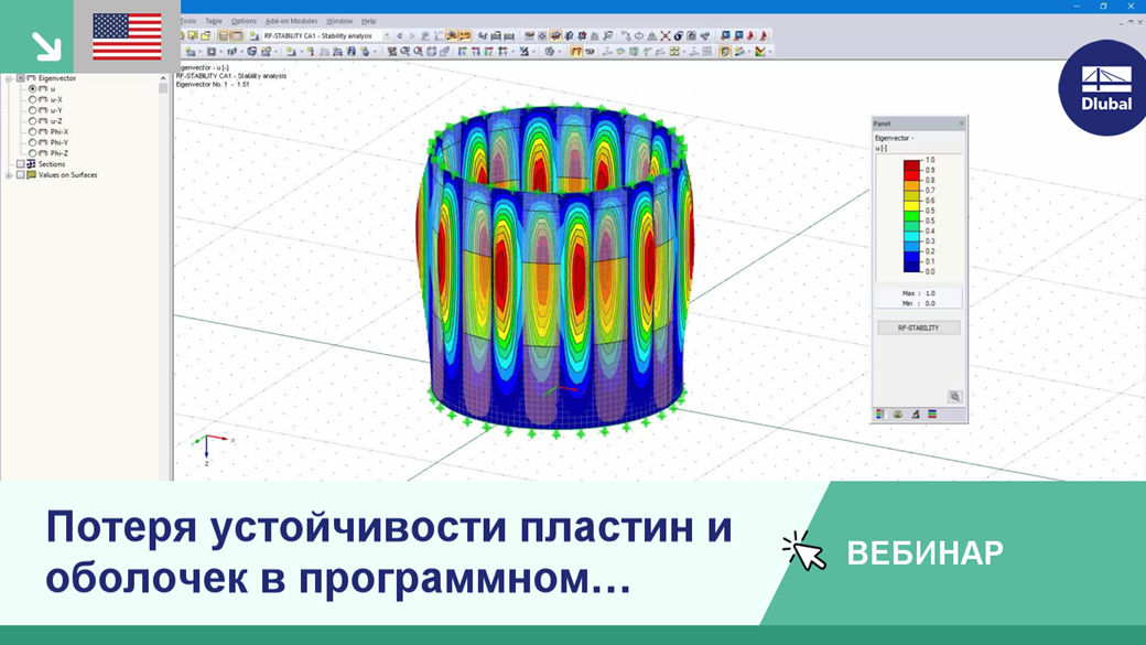 В этом вебинаре показано, каким образом можно использовать программное обеспечение для расчета конструкций от компании Dlubal для расчёта потери устойчивости пластин по норме EN 1993‑1‑5 и расчёта потери устойчивости оболочек по норме EN 1993‑1‑6.