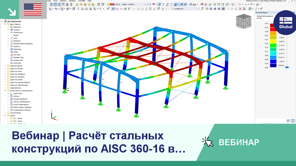 На этом вебинаре будет представлена информация о расчете стальных конструкций в соотв. с AISC 360-16 в RFEM 6.