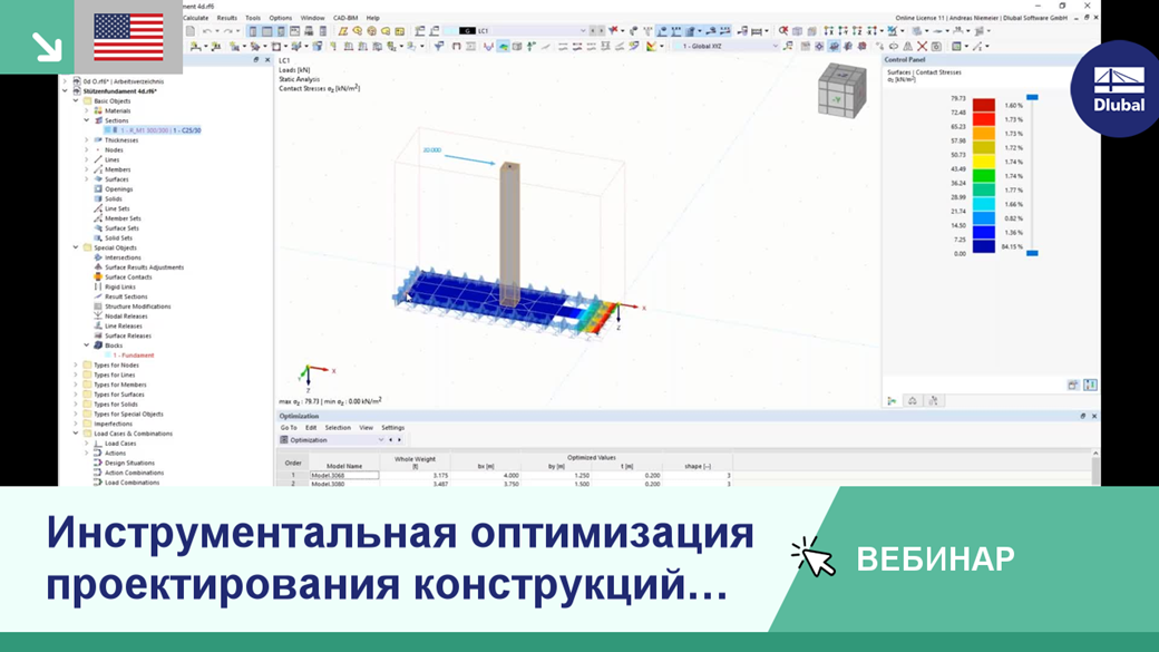 Преобразование задания на оптимизацию в RFEM и оценка результатов