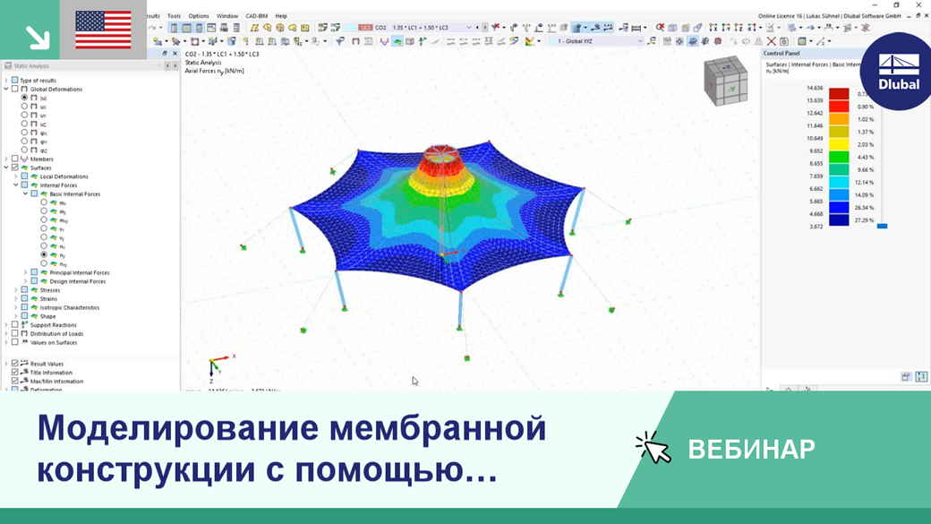 Моделирования мембранной конструкции в режиме реального времени