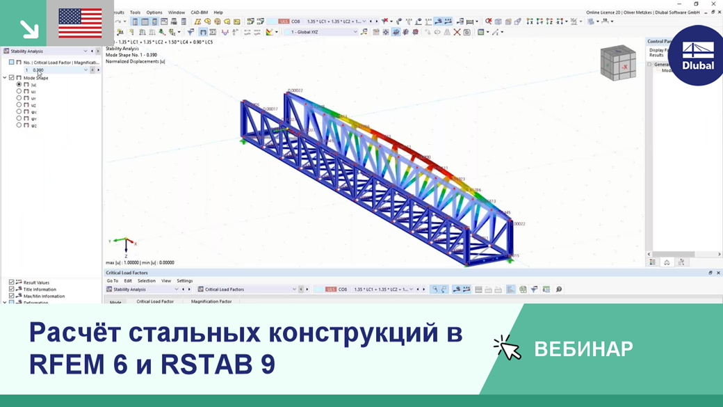 Определение длины потери устойчивости с помощью аддона «Устойчивость конструкции» и расчёт стальных стержней по Еврокоду 3 с помощью аддона «Расчёт стальных конструкций»
