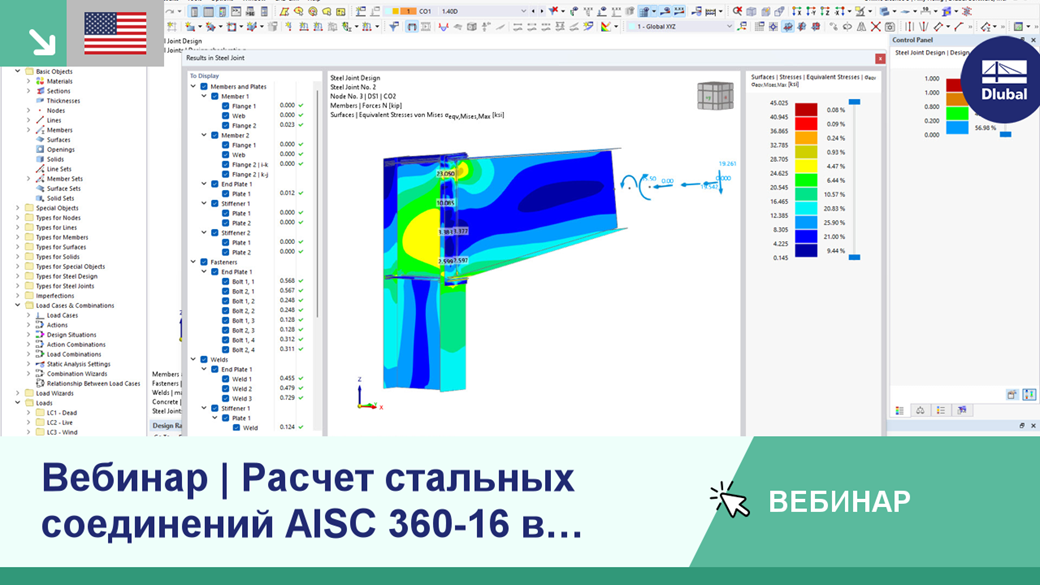 В этом вебинаре будет представлено введение в расчет стальных соединений с использованием МКЭ в соотв. с AISC 360-16 в RFEM 6.