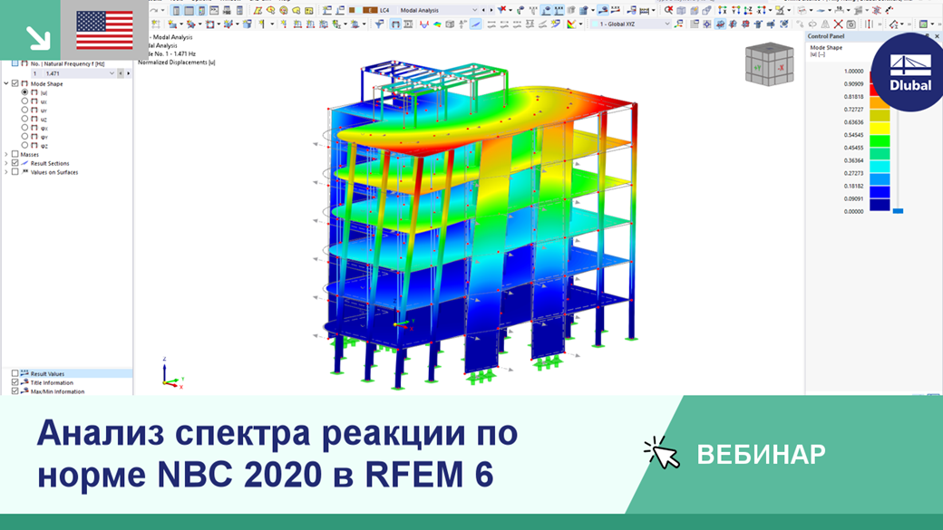 Бесплатный вебинар | Анализ спектра реакций в программе RFEM 6 по норме NBC 2020 (США)
