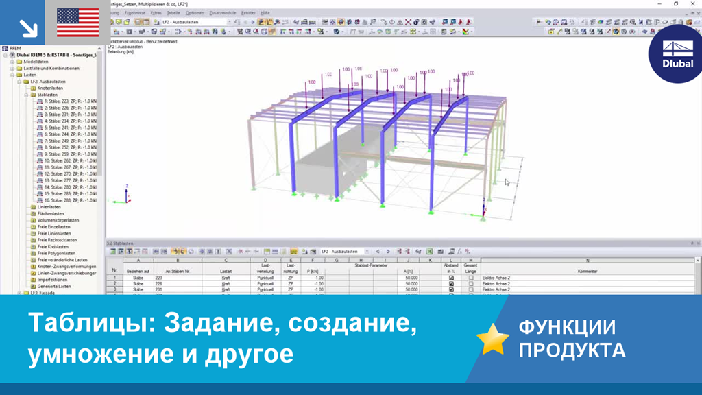 Dlubal RFEM 5 & RSTAB 8 - Таблицы: Задание, создание, умножение и другое