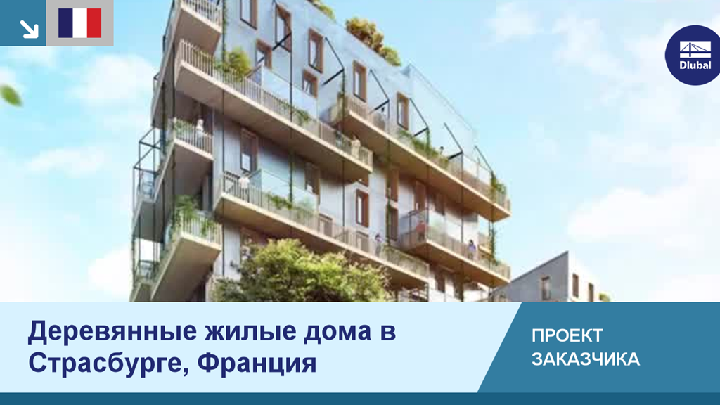 Комплекс жилых домов «Îlot bois de Strasbourg» - это один из первых проектов во Франции, сделанный из CLT, высота которого превышает 30 м. Весь комплекс состоит из трех многоэтажных зданий, в которых на первом этаже располагаются коммерческие помещения, а на верхних этажах затем находится 146 квартир. Общая площадь новой мембранной кровли составляет 9 300 м2.