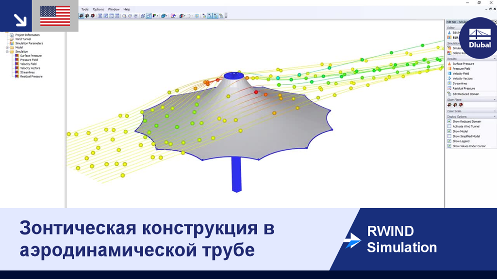 RWIND Simulation | Зонтическая конструкция в аэродинамической трубе
