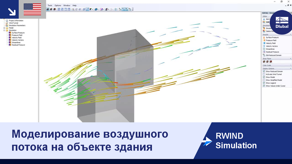 RWIND Simulation - это автономная программа для CFD моделирования воздушного потока вокруг зданий или любых других объектов и создания ветровых нагрузок, то есть сил, действующих на эти объекты. Все скоростные давления и подсосы ветра затем можно легко импортировать прямо в программу для расчета конструкций RFEM или RSTAB в качестве нагрузок.