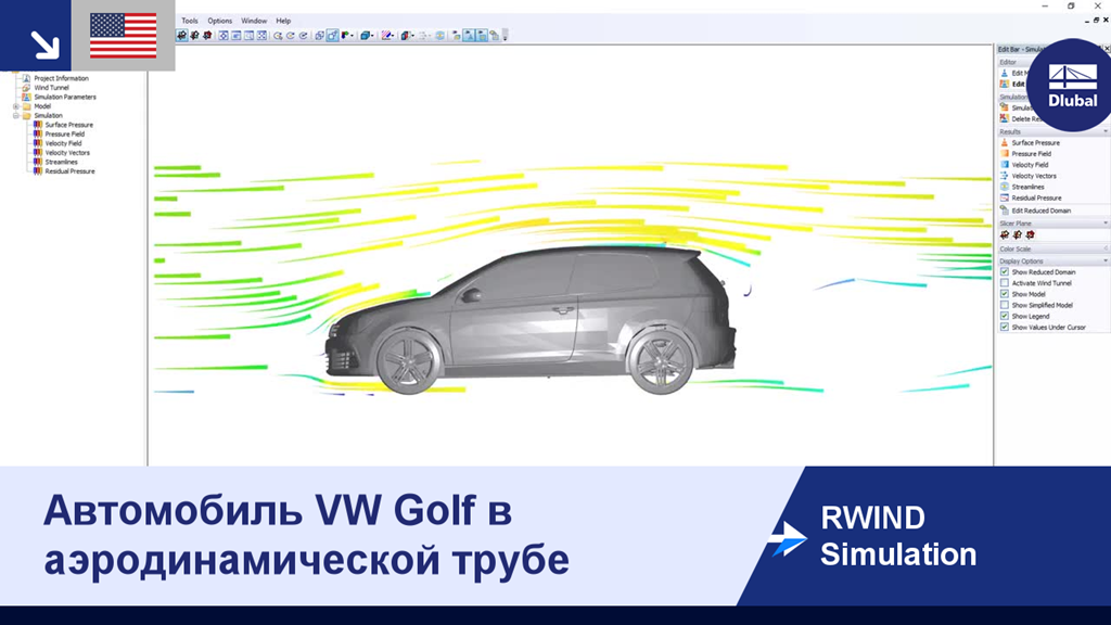 RWIND Simulation | Автомобиль VW Golf в аэродинамической трубе
