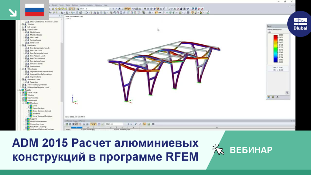 11:26 мин: Моделирование, определение нагрузок и расчет алюминиевой конструкции в программе RFEM