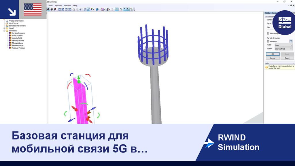 В данном видео показаны воздушные потоки вокруг базовой станции для мобильной связи 5G.