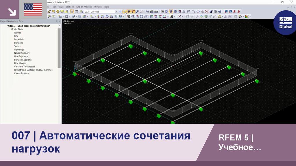 RFEM 5 - Учебное пособие для студентов | 007 Автоматические сочетания нагрузок