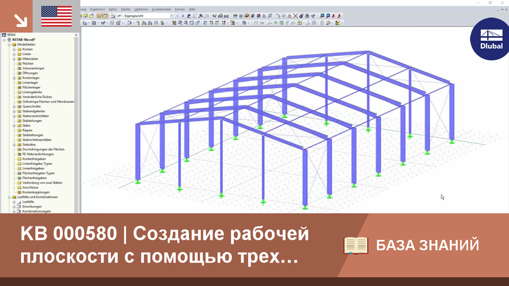 В программе RFEM 5 и RSTAB 8 теперь можно создавать рабочую плоскость, просто выбрав три требуемые точки, благодаря чему уже не требуется создавать пользовательскую систему координат.