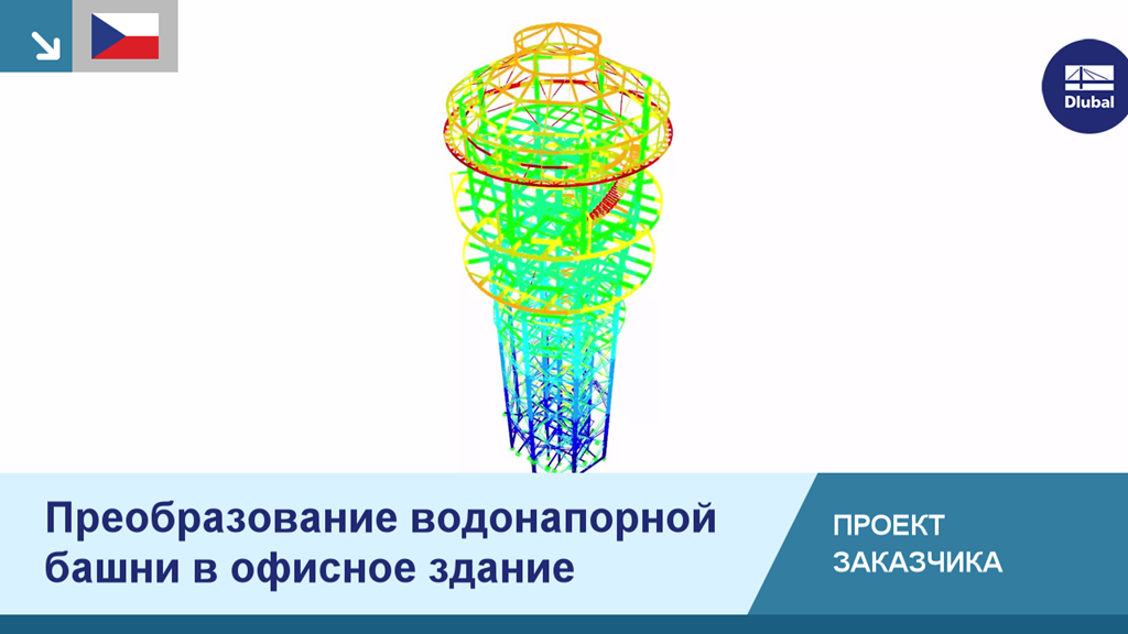 В рамках данного проекта была преобразована водонапорная башня из 1936 года с объемом 800 м3, которая находится в городской части Кладно-Розделов (Чехия). Главной целью притом стала отделка существующей конструкции башни и строительство новой несущей конструкции из стали так, чтобы компания VKM a.s. могла использовать данный объект в качестве своего офисного здания.