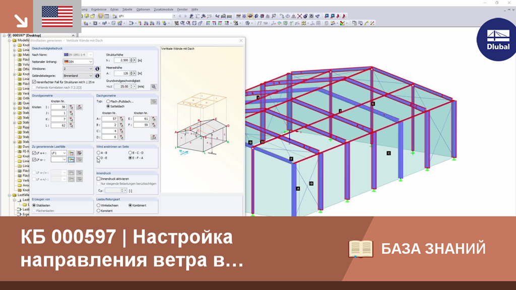 Генератор нагрузок в программе RFEM и RSTAB представляет собой мощный инструмент для определения ветровых нагрузок. В программе RFEM 5 и RSTAB 8 для генератора ветровой нагрузки была добавлена функция «Задать боковой ветер». После определения основной геометрии и геометрии кровли с помощью выбора угловых узлов, активируется выбор направлений ветра. Таким образом, вы можете очень быстро определить направление, в котором ветер воздействует на конструкцию, прямо через окно ввода.