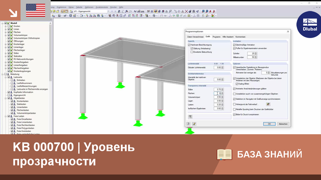 Интенсивность прозрачности различных графических элементов в режиме сплошного прозрачного изображения можно отредактировать индивидуально в диалоговом окне «Параметры программы» во вкладке «Графика», чтобы улучшить обзор. Высокое значение означает низкую прозрачность.