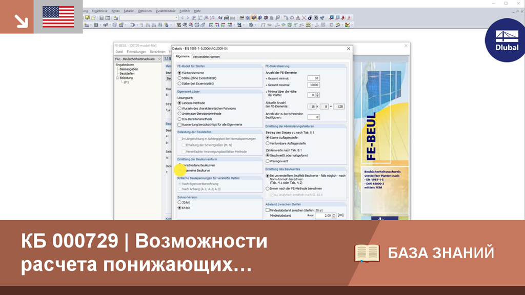 В PLATE ‑ BUCKLING 8 можно использовать две опции в подробных настройках для расчета понижающих коэффициентов потери устойчивости пластины.