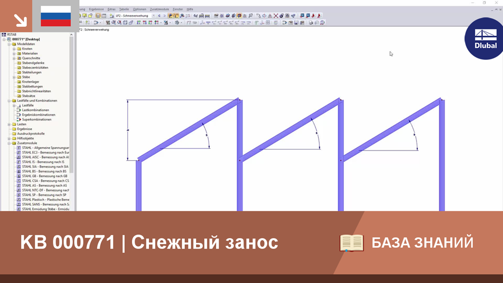 Нагружение снеговым заносом у пильчатых крыш учитывается в программах RFEM и RSTAB согласно п. 5.3.4 (3) нормы DIN EN 1991‑1‑3.