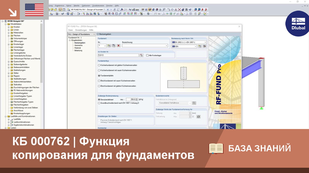Для облегчения определения нескольких фундаментов в RF-/FOUNDATION Pro доступна функция копирования. Таким образом, можно скопировать все входные данные уже заданного фундамента в новый фундамент. После копирования можно быстро отредактировать исходные данные нового фундамента.