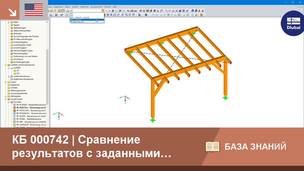 Дополнительный модуль RF-/LIMITS позволяет сравнивать предельное состояние стержней, концов стержней, узлов, узловых опор и поверхностей (только для RFEM) с помощью заданной предельной несущей способности. Кроме того, можно проверить смещения узлов и размеры сечения. В данном примере нужно сравнить основания колонн навеса для машины с максимально допустимыми силами, указанными производителем.