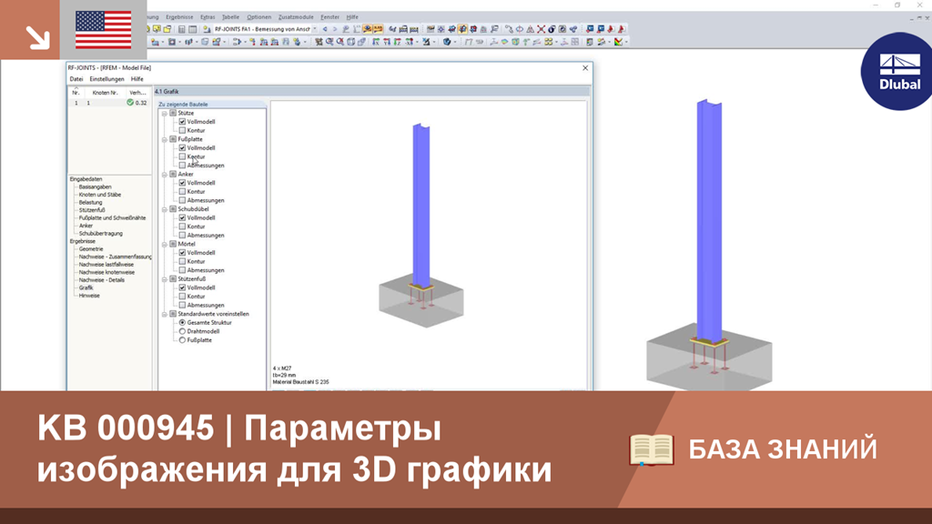 Кроме таблиц результатов можно в дополнительном модуле RF-/FRAME-JOINT Pro и RF-/JOINTS создавать также трехмерную графику. Это особо помогает при реалистичном изображении соединений в масштабе.