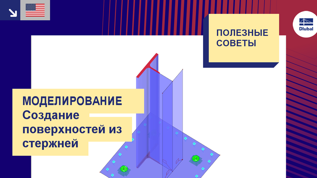 Было бы целесообразно, но это заняло бы много времени, чтобы вводить сечение вручную, с использованием элементов поверхности. Функция "Создать поверхности из стержней" облегчает отображение 1D элемента стержня с помощью 2D элементов поверхности.
