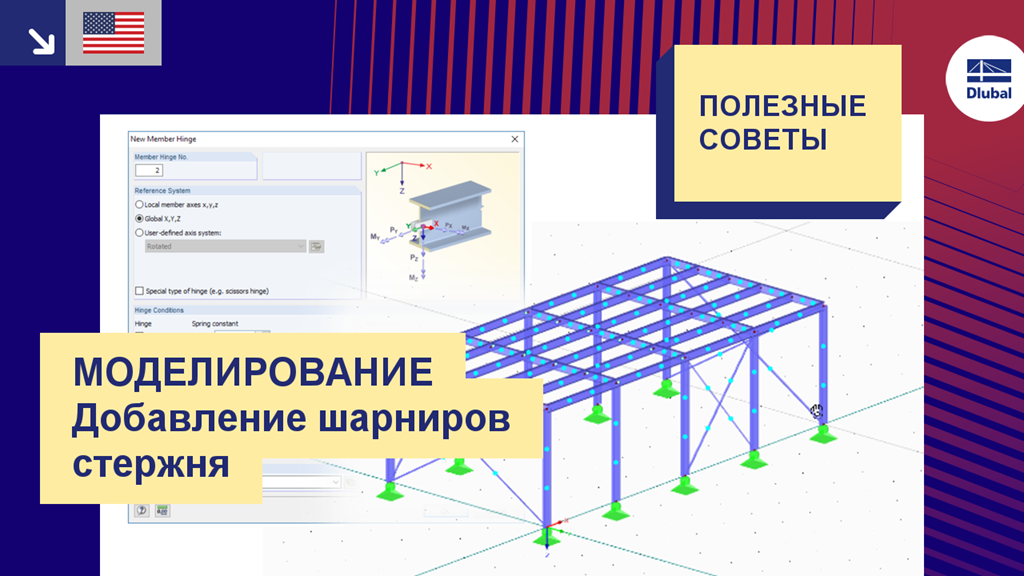 В этом видео «Полезные советы» мы покажем вам, как добавить шарниры стержней в RFEM четырьмя различными способами. Согласно нашей вики -странице по расчету конструкций, шарниры стержней - это шарниры, которые можно расположить в начале или на конце стержня для ограничения передачи внутренних сил.