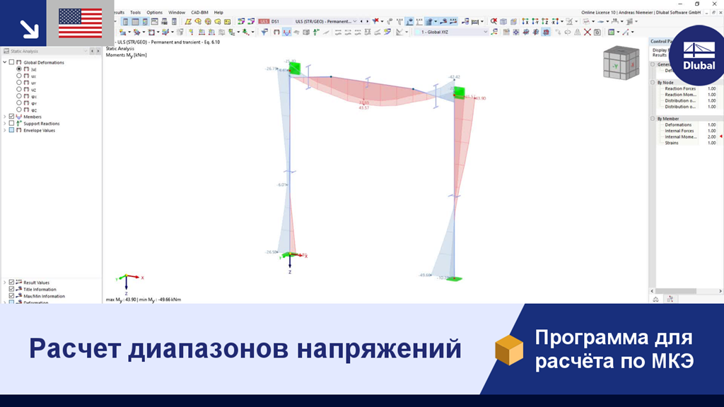 В данном видео показан расчет диапазонов напряжений с учетом различных ситуаций нагружения. Эта задача решается в RFEM 6 или RSTAB 9 с помощью аддона «Stress-Strain Analysis» с указанием подлежащих расчету стержней.
