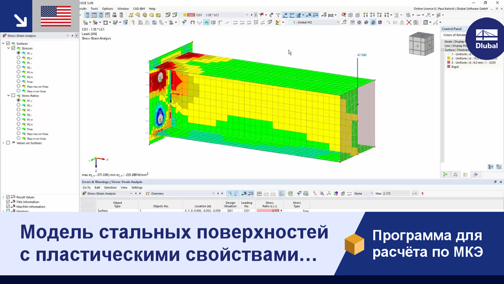 Модель стальной поверхностной конструкции с учётом пластических свойств материала