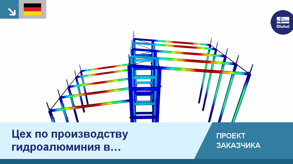 Проект строительства ангара недалеко от Дюссельдорфа занимает собой площадь около 220 м по длине и ширине 120 м. Он включает в себя различные мостовые соединения с существующими помещениями, трехнефный производственный цех с хозяйственными постройками, а также высокостеллажный склад длиной 100 м и высотой 30 м,