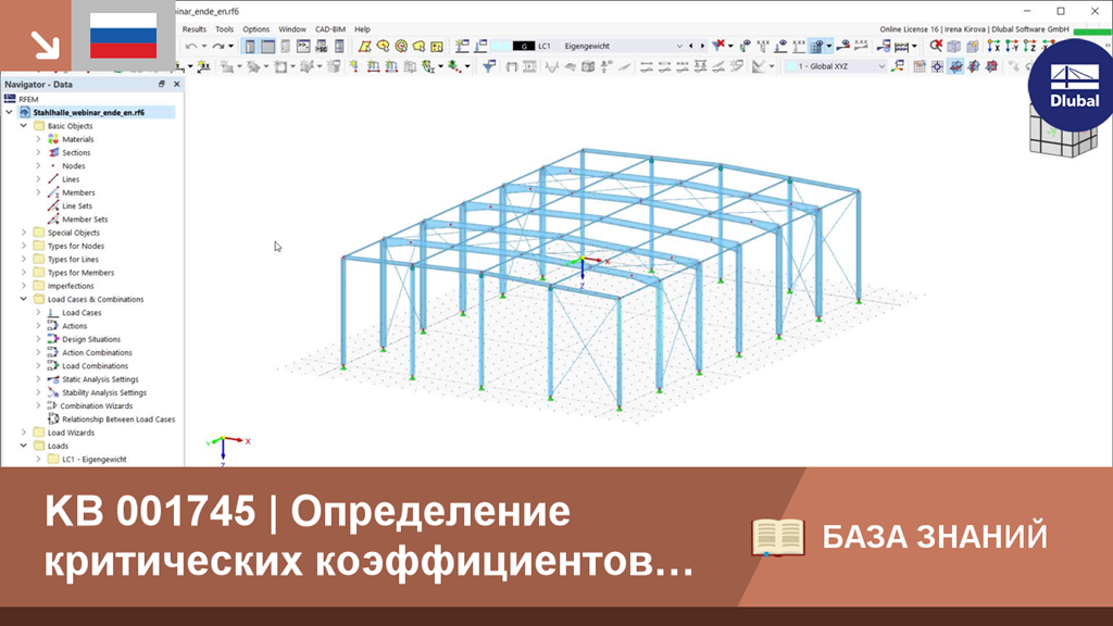 Это видео покажет вам практический пример того, как определять критические коэффициенты нагрузки и соответствующие режимы устойчивости в RFEM 6.