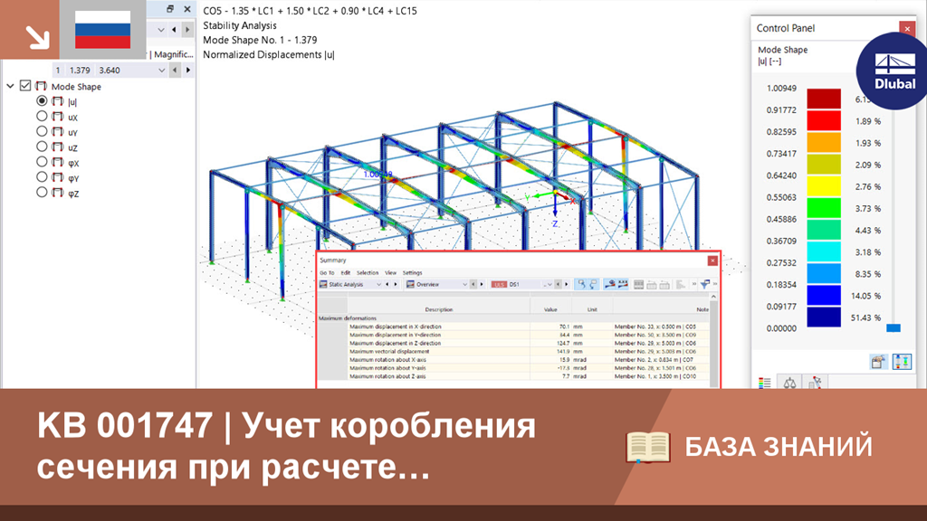 KB 001747 | Учёт депланации сечения при расчёте устойчивости стержневых конструкций