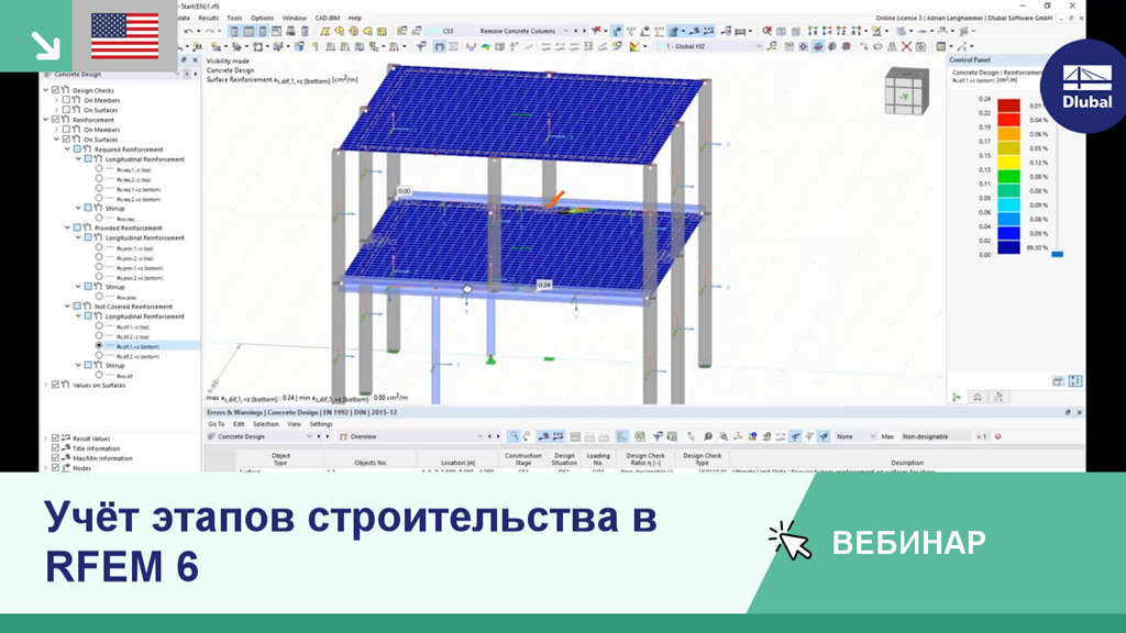 В этом вебинаре показано, как с помощью аддона Расчёт стадий строительства (CSA) учесть стадии строительства конструкции в программе RFEM 6.