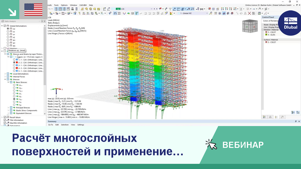 В этом вебинаре мы покажем вам, как использовать программу расчета и проектирования конструкций RFEM 6 для расчета многослойных поверхностей и применения моделей зданий.